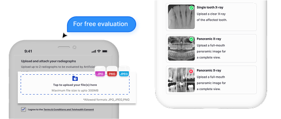 Have your dental X-rays ready? Simply upload them in any standard format (JPEG, PNG, JPG) for quick evaluation.