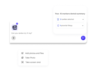 On-image highlights of findings (e.g., caries, calculus, periapical concerns) Shareable summary to take to your dentist.